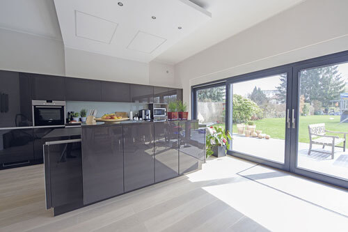 • Einbau einer zentralen Lüftungsanlage mit Wärmerückgewinnung (90 – 95% und Blower-Door Test
